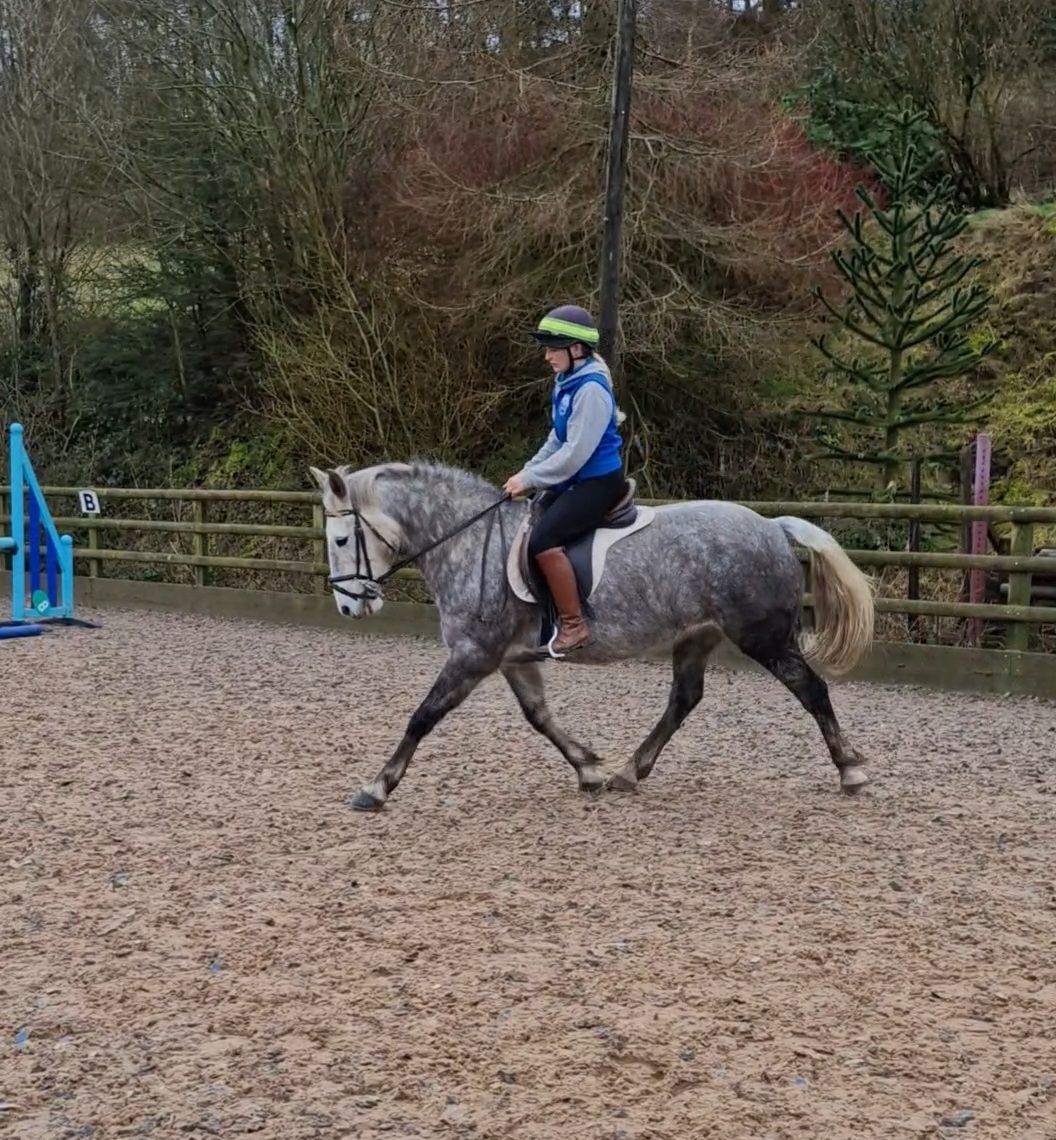 Misty is a great pony, with 3 lovely paces. She hacks alone and in company and works well in the arena. She works in an outline and is a responsive forward going ride. A real fun pony.